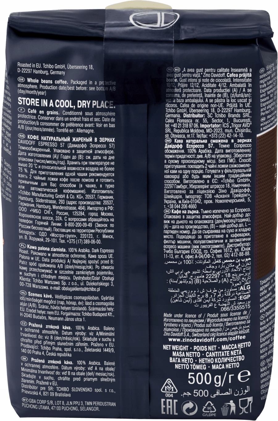 Najwyższa jakość i niepowtarzalny smak: Davidoff Espresso 57 Intense. Najlepsze ziarna Arabiki pochodzące z Afryki, Ameryki Łacińskiej i strefy Pacyfiku zostały połączone, wypalone do poziomu niezwykłej delikatności i tak powstała kawa Davidoff Café Espresso 57. Nazwa Espresso 57” wiąże się ze sposobem palenia, który charakteryzuje perfekcyjna równowaga pomiędzy długością procesu, a odpowiednią temperaturą utrzymywaną w czasie jego trwania.