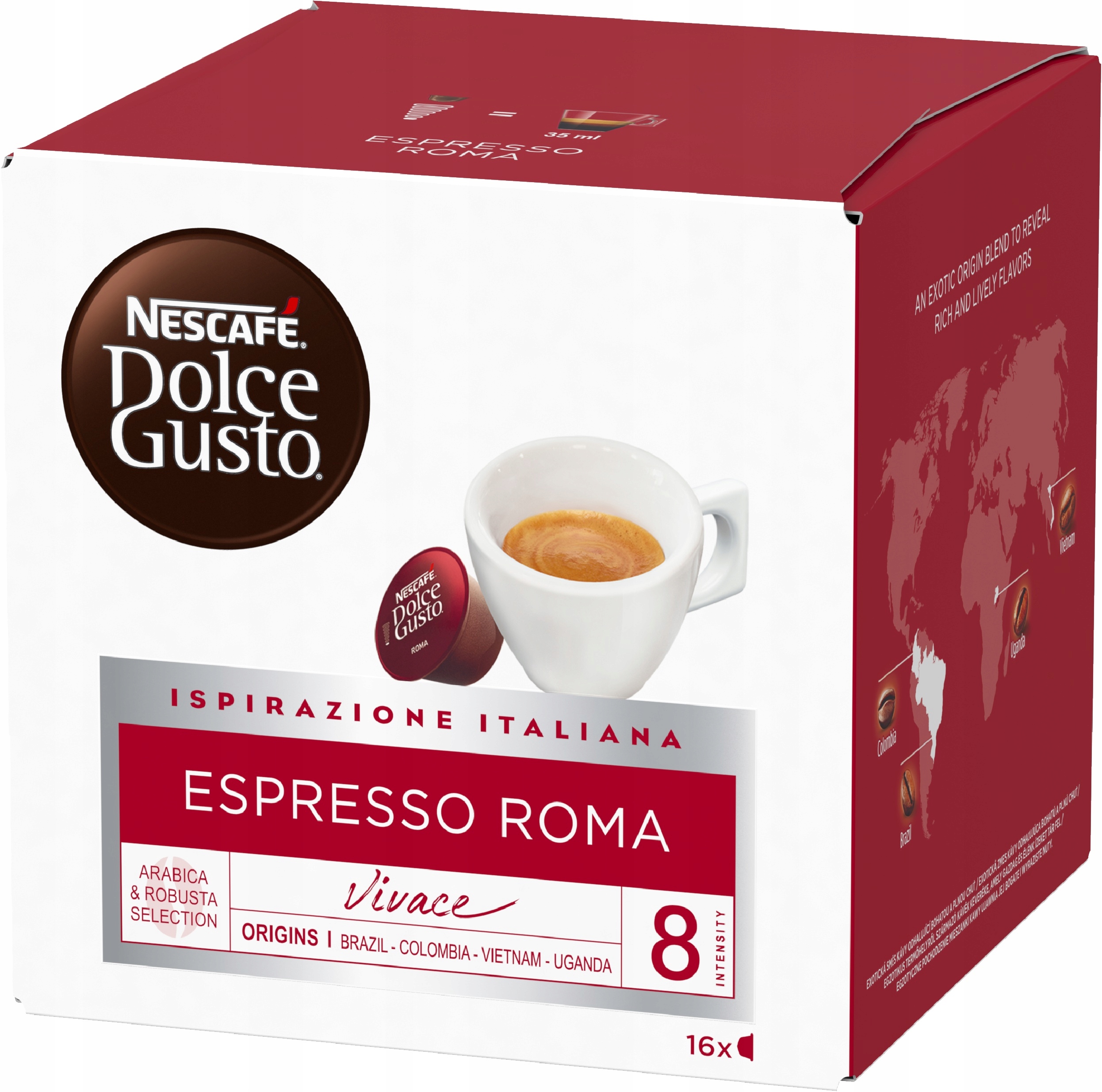 Odkryj ponadczasow? atmosfer? stolicy z bogatym i intensywnym espresso NESCAF? DOLCE GUSTO ESPRESSO ROMA. 5 kaw r??nego pochodzenia, umiej?tnie po??czonych w bogat? i zaokr?glon? kaw? espresso, kt?ra ods?ania aksamitne cia?o z nutami pra?onej czarnej porzeczki. Aromat tego espresso pod g?st? piank? sprawi, ?e poczujesz si? jak w Rzymie.