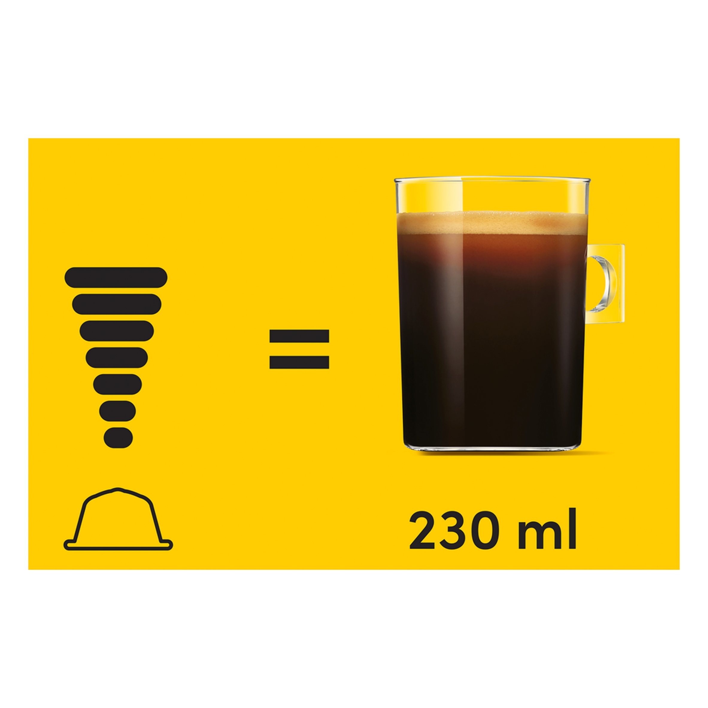 Doskona?a propozycja dla mi?o?nik?w du?ej, aromatycznej czarnej kawy o ?agodnym smaku i pe?nym aromacie. Kapsu?ki zosta?y zaprojektowane z my?l? o tych, kt?rzy ceni? sobie poranny kubek ?wie?o zaparzonej kawy o pojemno?ci a? 300 ml ? idealny do powolnego delektowania si? ka?dym ?ykiem.