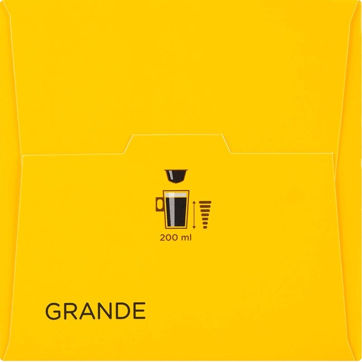Rozpocznij dzie? od du?ej, ?agodnej, czarnej kawy z g?st?, kremow? piank? ? ?crem??. Grande powstaje wy??cznie z ziaren Arabiki, co zapewnia jej wyj?tkowo harmonijny smak. Idealna jako du?a porcja czarnej kawy (200 ml) na dobry pocz?tek ka?dego dnia. R?wnie doskona?a z mlekiem.