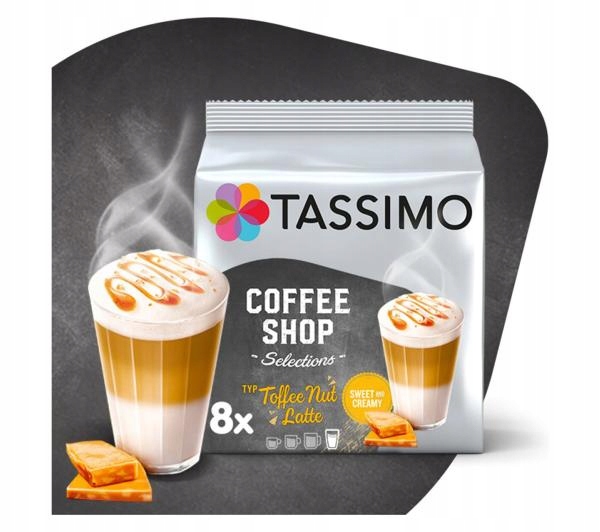 Nowa linia specja??w z kawiarni od JDE Tassimo. Odkryj Toffee Nut Latte to ekscytuj?ce po??czenie espresso oraz kremowego smaku karmelowo-orzechowego i mi?kkiej pianki mlecznej.