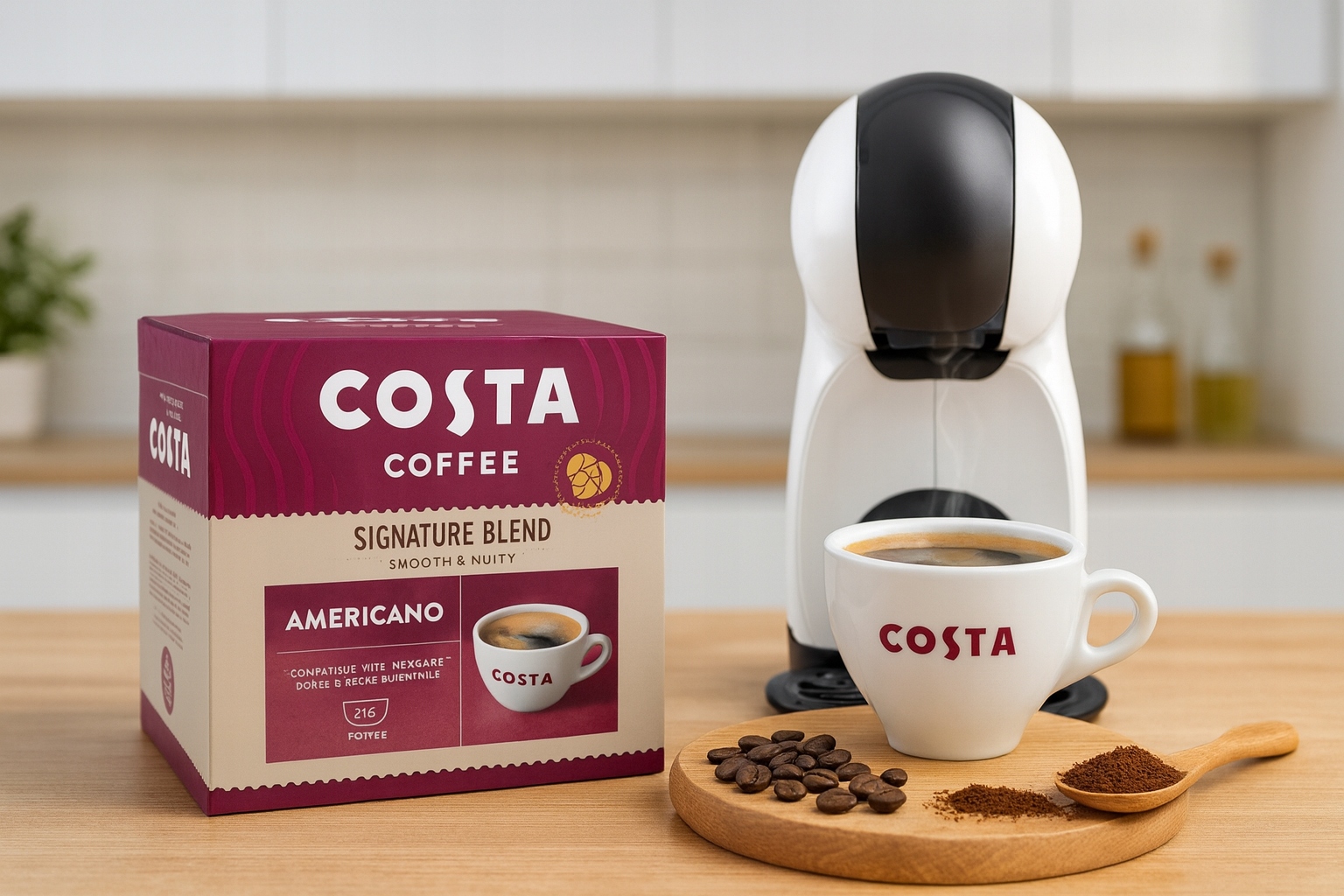 Costa Coffee Signature Blend Americano w kapsu?kach kompatybilnych z systemem Nescaf? Dolce Gusto to propozycja dla os?b, kt?re pragn? cieszy? si? smakiem kawy rodem z kultowych kawiarni Costa ? teraz w domowym zaciszu. Ka?da kapsu?ka kryje w sobie starannie skomponowan? mieszank? ziaren Arabica i Robusta, palon? z pasj? i kunsztem, by uzyska? wyj?tkowo zbalansowany smak.