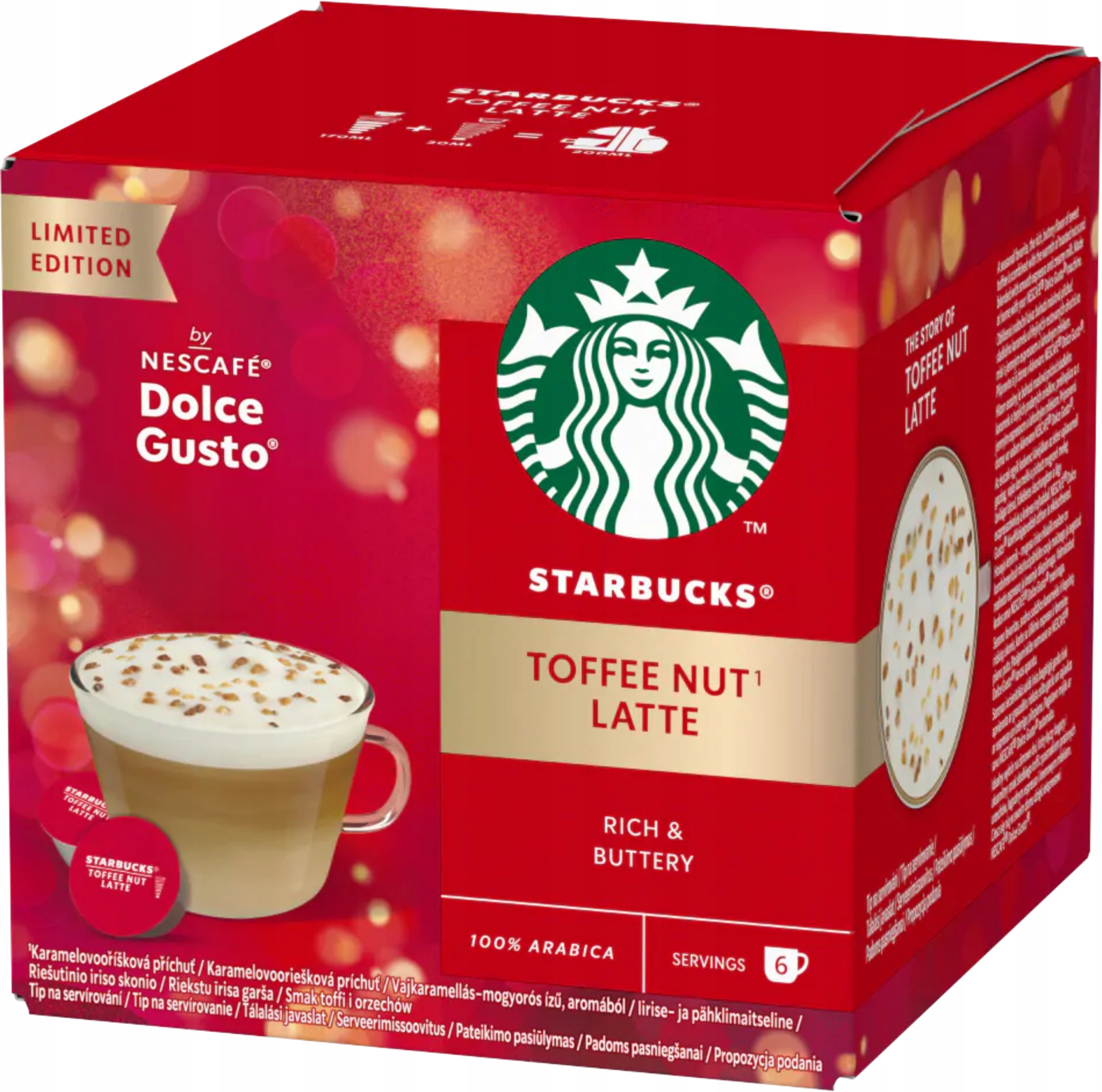 \nZainspirowana znanym i lubianym Toffee Nut Latte serwowanym w kawiarniach Starbucks?. Teraz t? delikatn? w smaku kaw? przygotujesz w domu w ekspresie NESCAFɮ Dolce Gusto?.