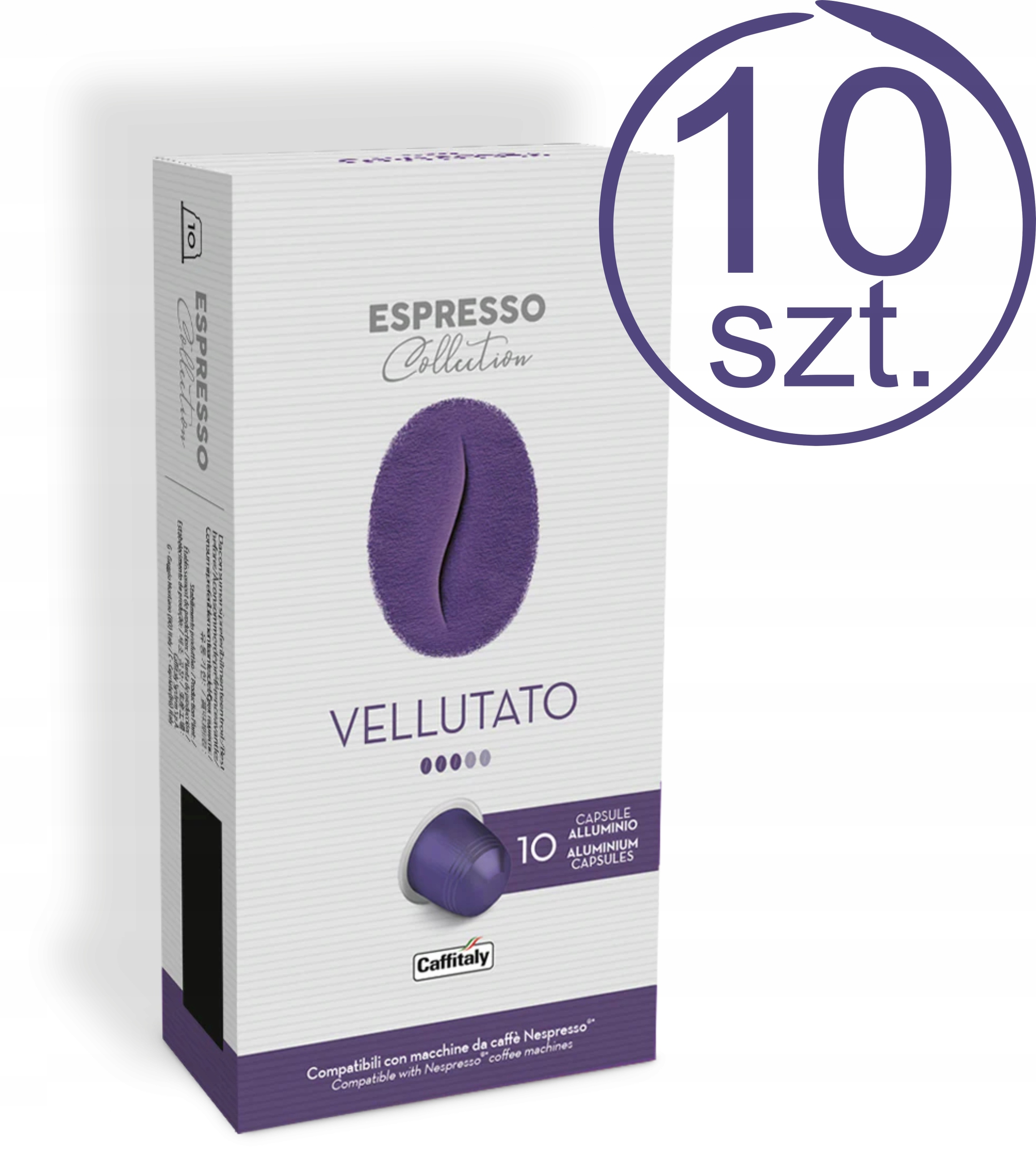 Caffitaly Espresso Collection Vellutato to propozycja dla os?b ceni?cych subtelne, ?agodne espresso z wyj?tkow? kremowo?ci?. Dzi?ki starannie dobranej mieszance ziaren arabiki, palonych w ?rednim stopniu, kawa zachwyca aksamitnym body, s?odkawymi nutami kwiatowo-owocowymi i delikatn?, jasn? crem?.