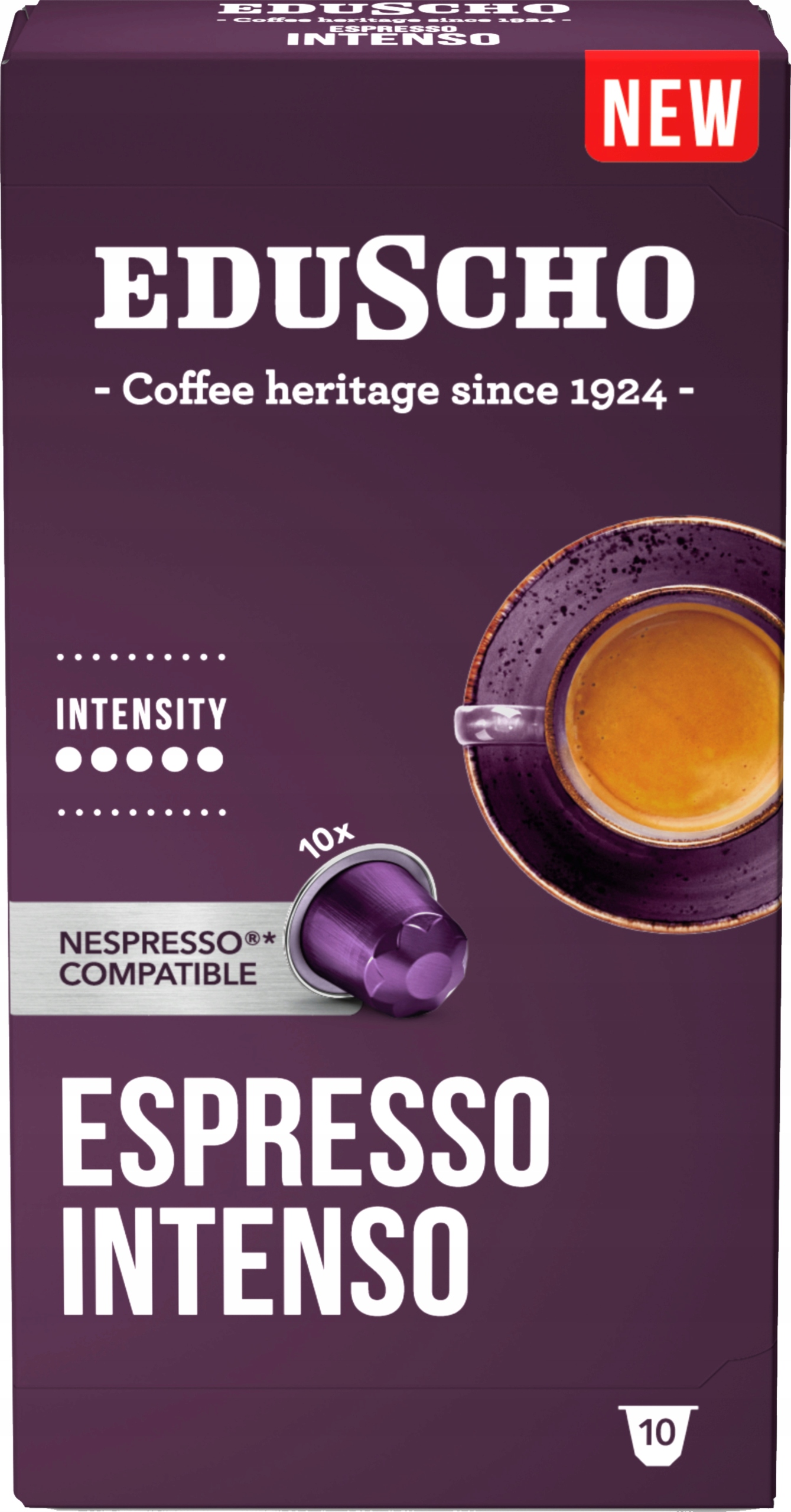 \nEduscho Espresso Intenso to propozycja dla os?b, kt?re ceni? sobie mocne, aromatyczne i wyraziste espresso. To starannie skomponowana mieszanka ziaren arabiki i robusty, gwarantuj?ca g??boki smak oraz intensywny aromat. Ka?da fili?anka to prawdziwe do?wiadczenie ? kawa o silnym charakterze, kt?ra dodaje energii i pobudza zmys?y.