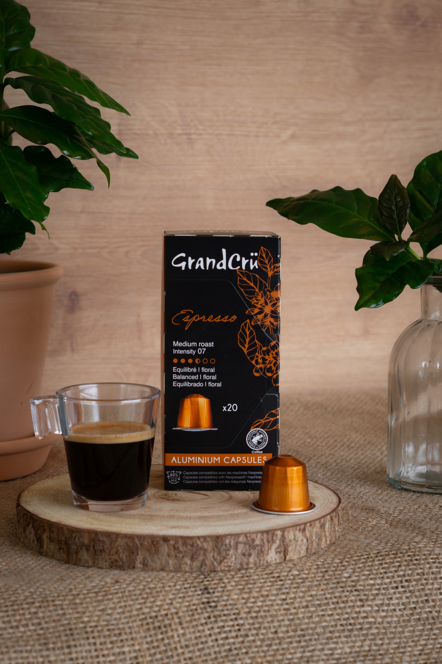 - Kapsu?a aluminiowa (80% z recyklingu) ? ca?kowicie bariera tlenowa (OTR), stabilny kszta?t podczas parzenia, 24 miesi?ce ?wie?o?ci.