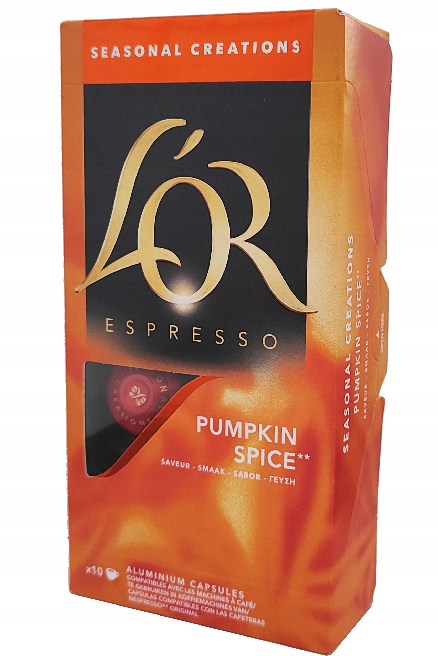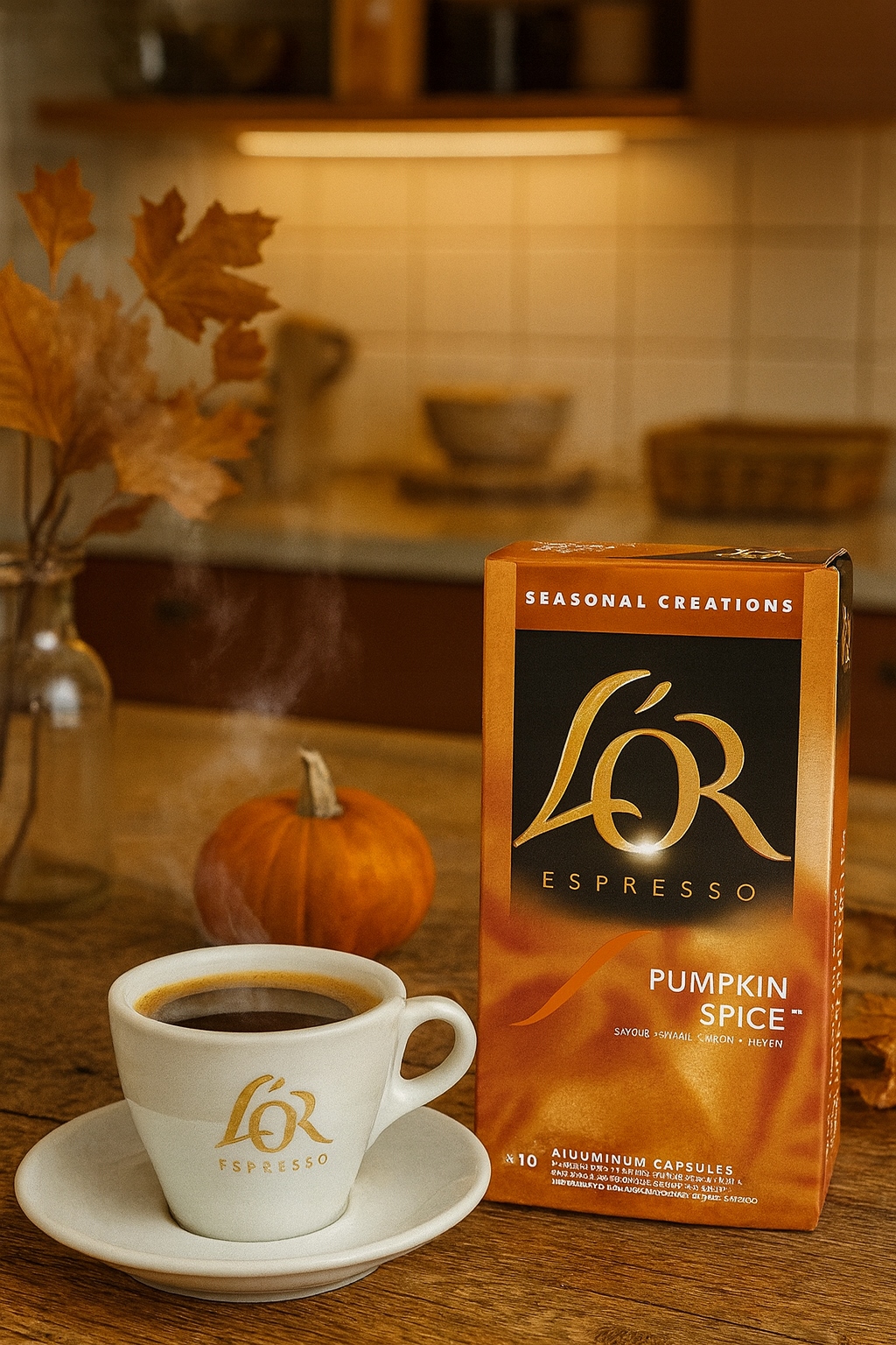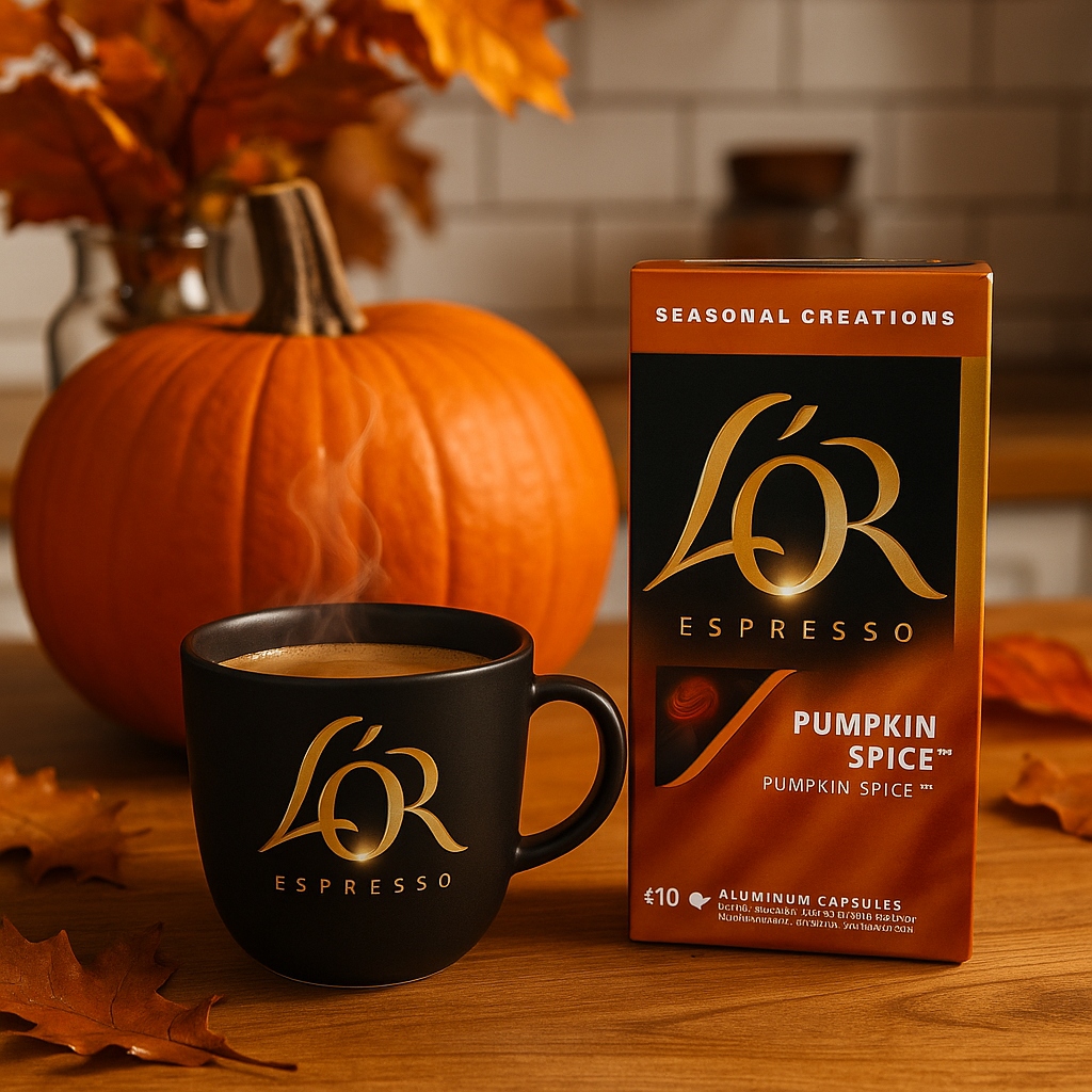 Jacobs L?OR Pumpkin Spice to limitowana edycja kawy w kapsu?kach, stworzona z my?l? o mi?o?nikach kaw smakowych i jesiennych aromat?w. Kompozycja inspirowana klasycznym pumpkin spice latte ??czy intensywn? kaw? z nutami dyni, cynamonu, go?dzik?w i delikatnej wanilii, tworz?c harmonijny, deserowy profil smakowy.