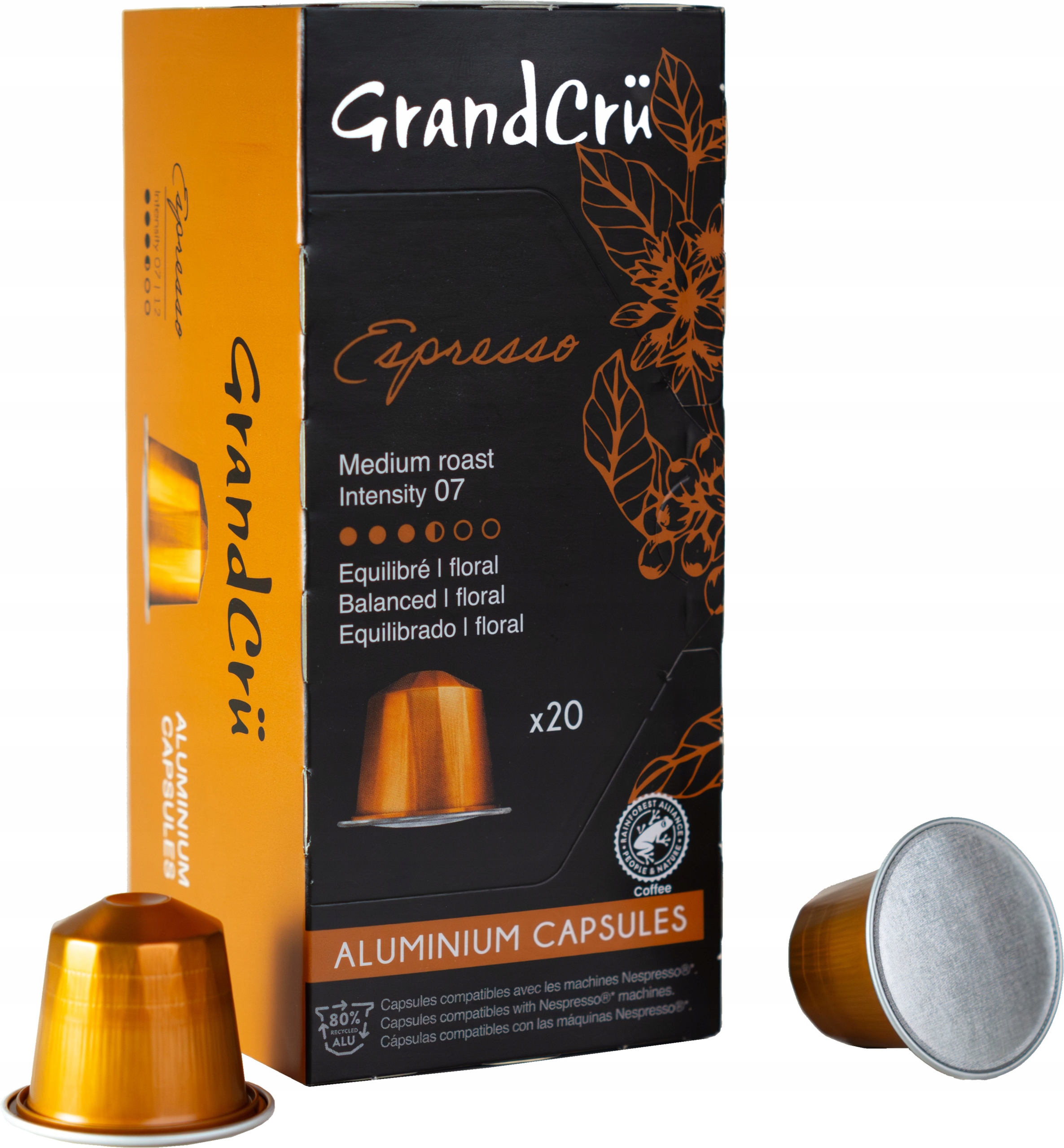 - Kapsu?a aluminiowa (80% z recyklingu) ? ca?kowicie bariera tlenowa (OTR), stabilny kszta?t podczas parzenia, 24 miesi?ce ?wie?o?ci.