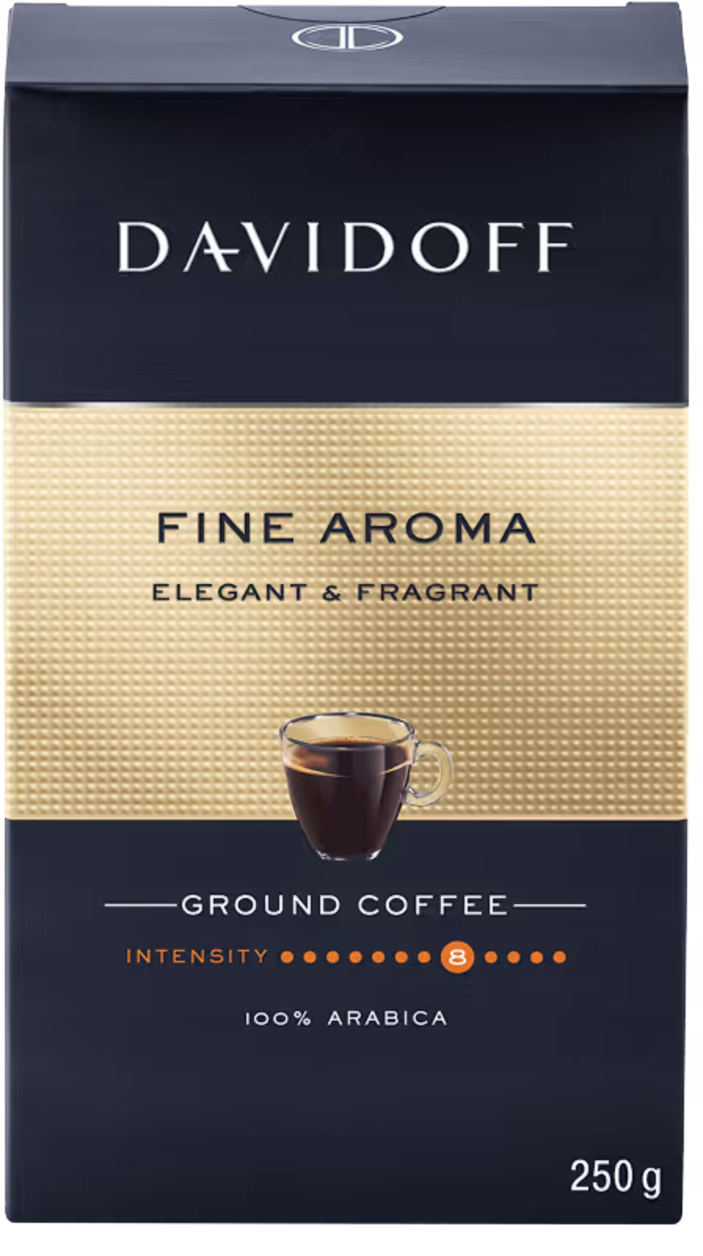 Dzięki średniemu stopniowi palenia, kawa Davidoff Fine Aroma oferuje lekko kwaskową nutę, subtelną słodycz i pełny aromat, który długo utrzymuje się w filiżance. Opakowanie 250 g zapewnia świeżość i wygodę użytkowania.
