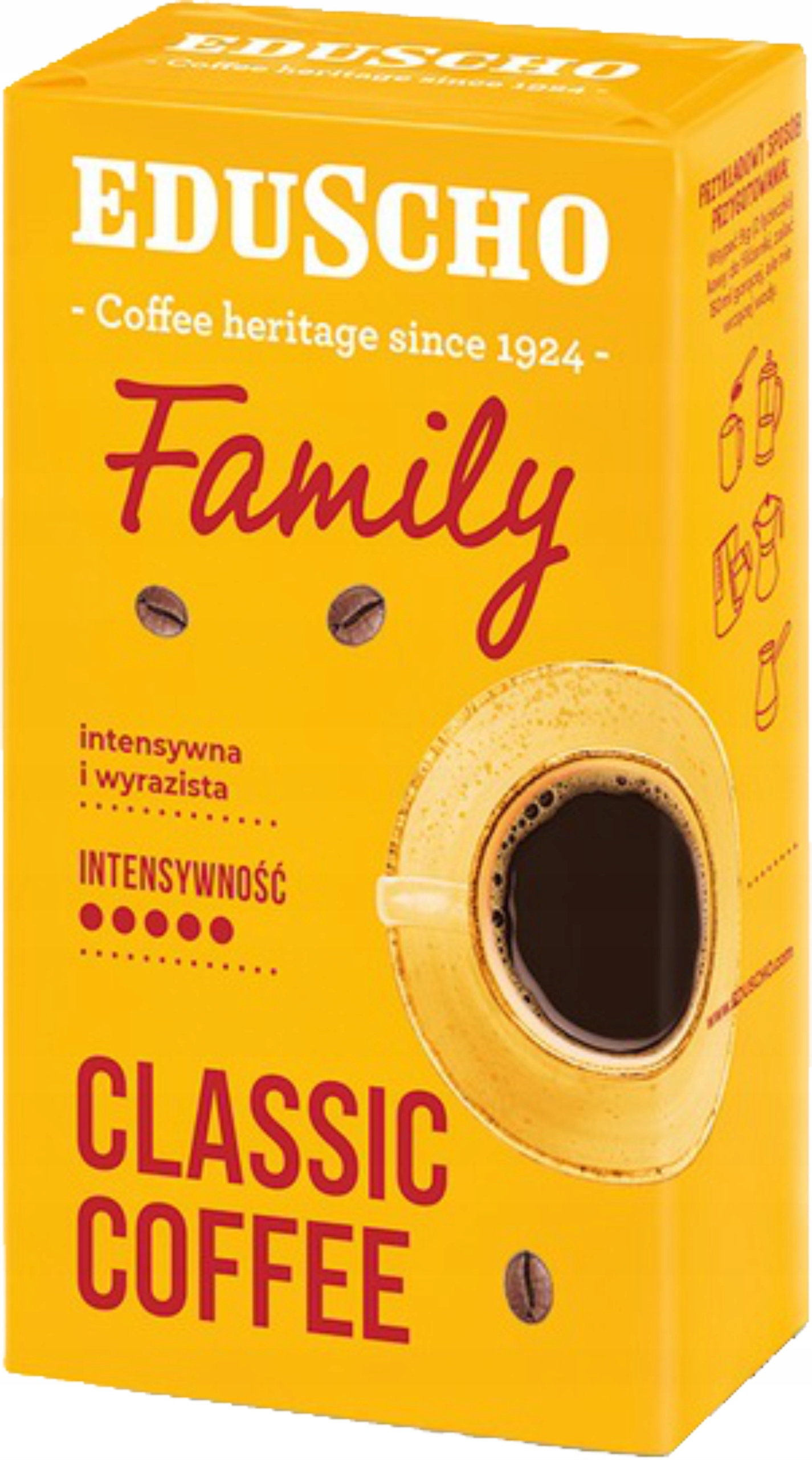 Eduscho Family to klasyczna kawa mielona, ceniona za zrównoważony smak i codzienną uniwersalność. Idealna propozycja dla osób, które szukają aromatycznej, łagodnej kawy do codziennego picia, sprawdzającej się w każdej metodzie parzenia.