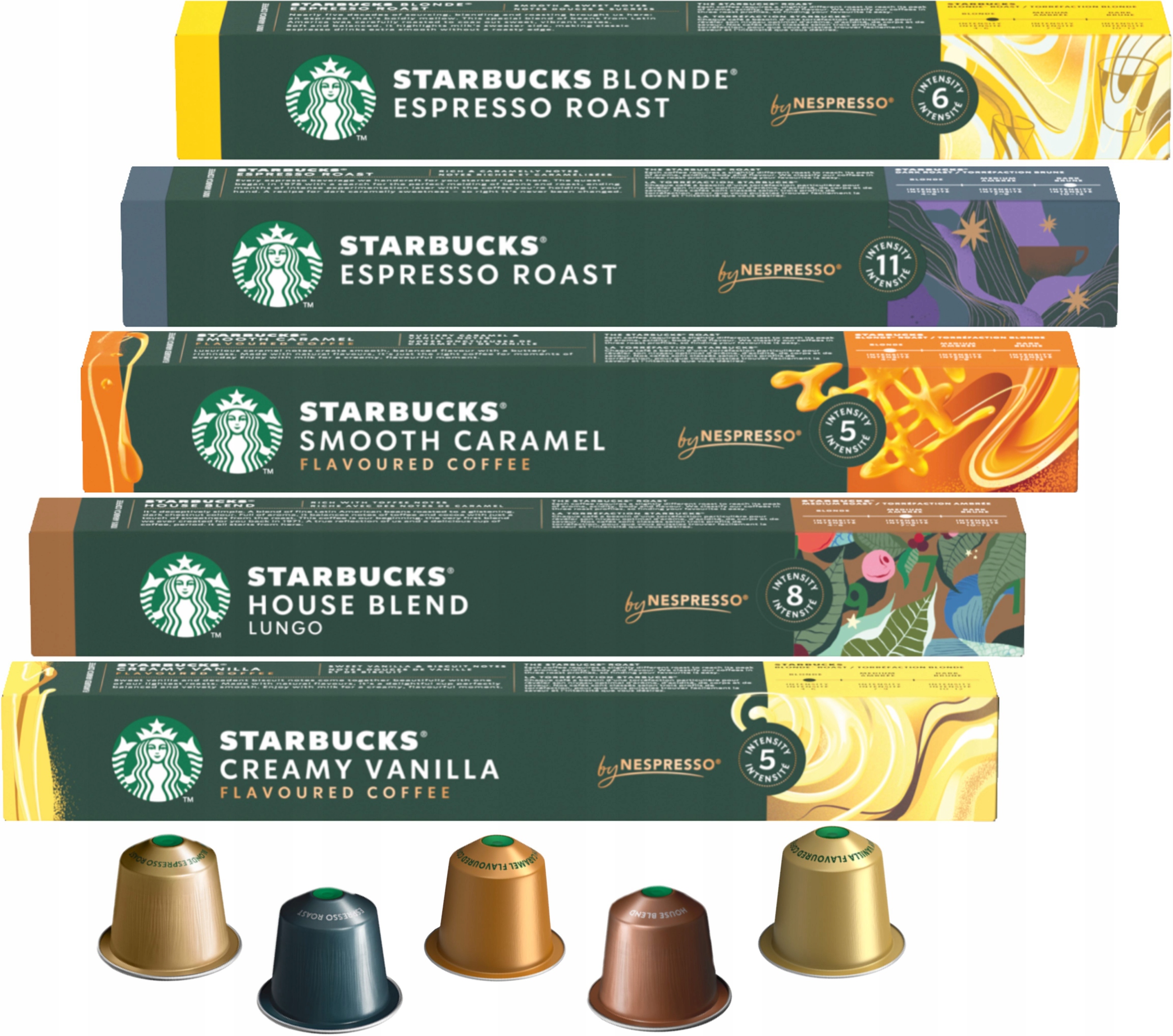 Delektuj si? po prostu pysznym smakiem kawy w ka?dej fili?ance STARBUCKS Blonde Roast Creamy Vanilla z nutami s?odkiej wanilii i i biszkopt?w STARBUCKS by NESPRESSO. Ka?da kapsu?ka kawy STARBUCKS by NESPRESSO zawiera starannie wyselekcjonowane ziarna STARBUCKS Blonde Roast. Ciesz si? t? s?odk? i przepyszn? fili?ank? kawy z mlekiem lub bez mleka.