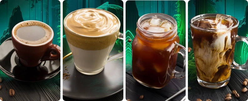 Na bazie ziaren Brasileiro można przygotować szeroką gamę napojów kawowych. Od intensywnego i kremowego espresso, po cappuccino z delikatną mleczną pianką lub aksamitną café latte.