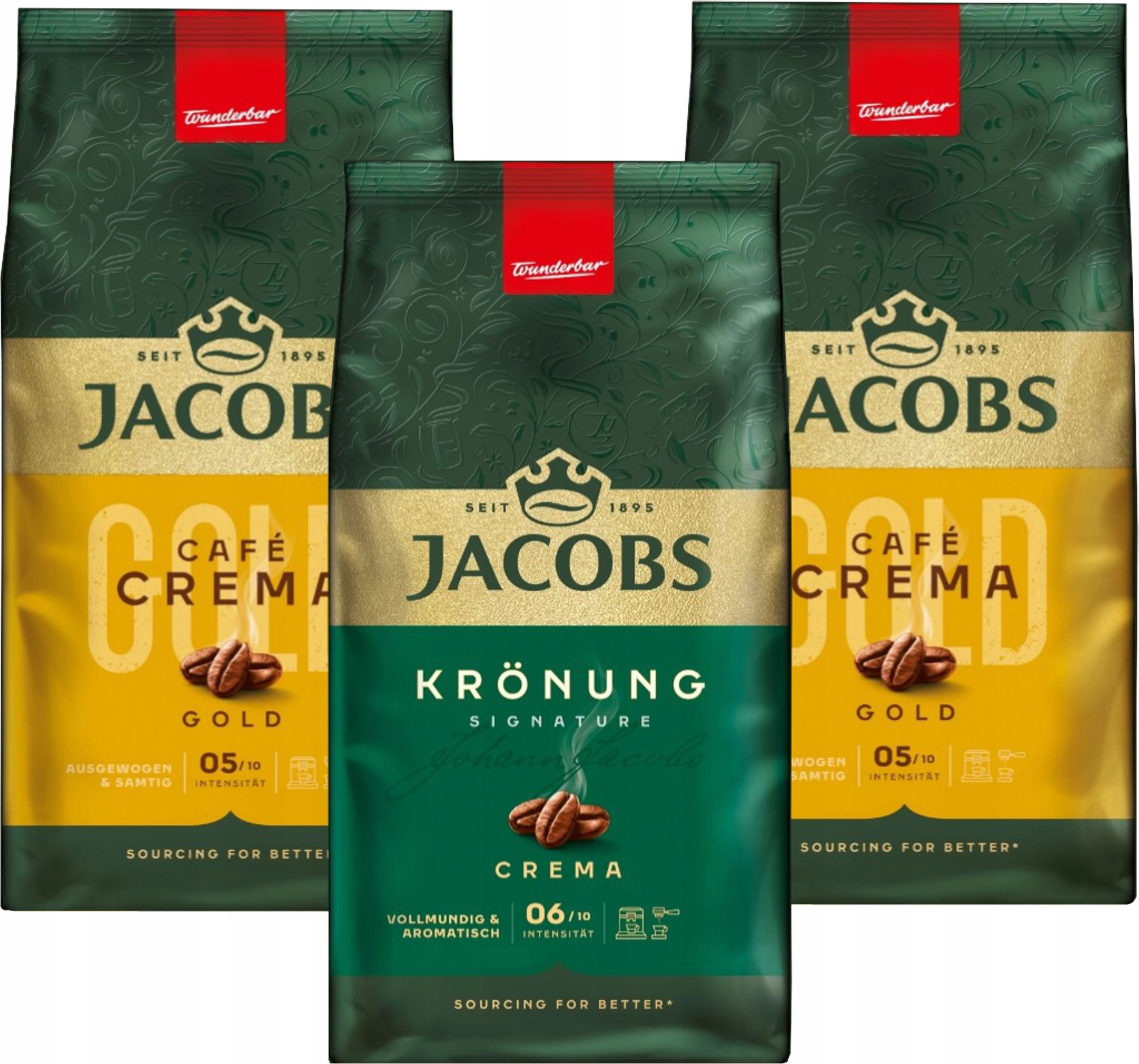 Kawa ziarnista Jacobs Crema Gold 2 x 1Kg + Kronung Crema 1Kg Zestaw