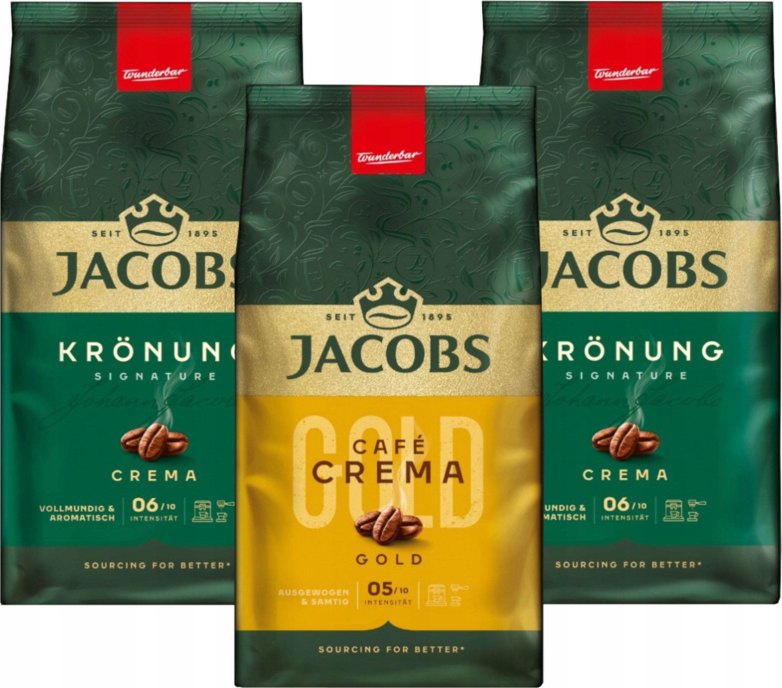 Kawa ziarnista Jacobs Kronung Crema 2 x 1Kg + Jacobs Crema Gold 1Kg Zestaw