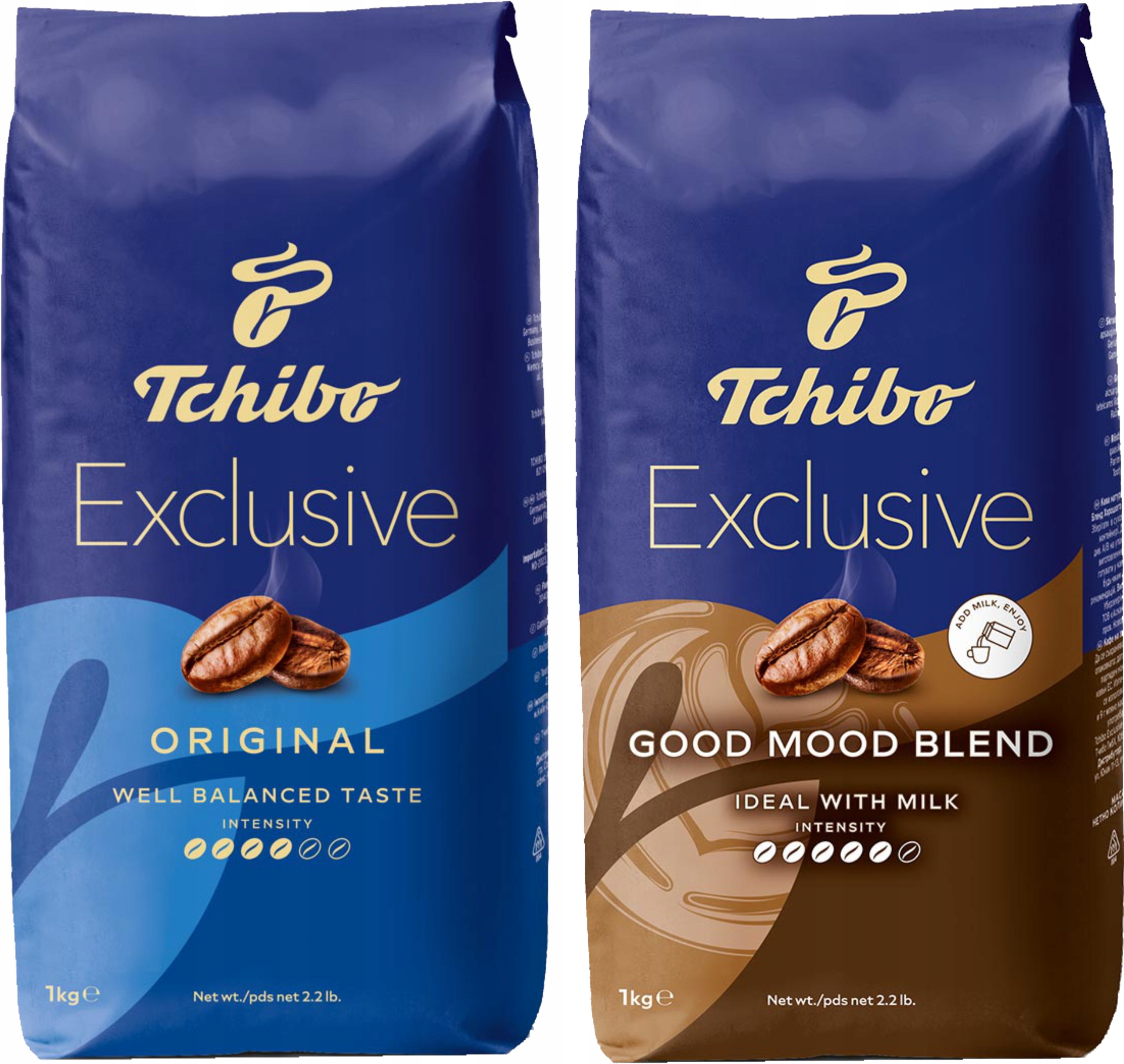 Kawa ziarnista Tchibo Zestaw Exclusive Orginal i Good Mood 2 x 1 Kg