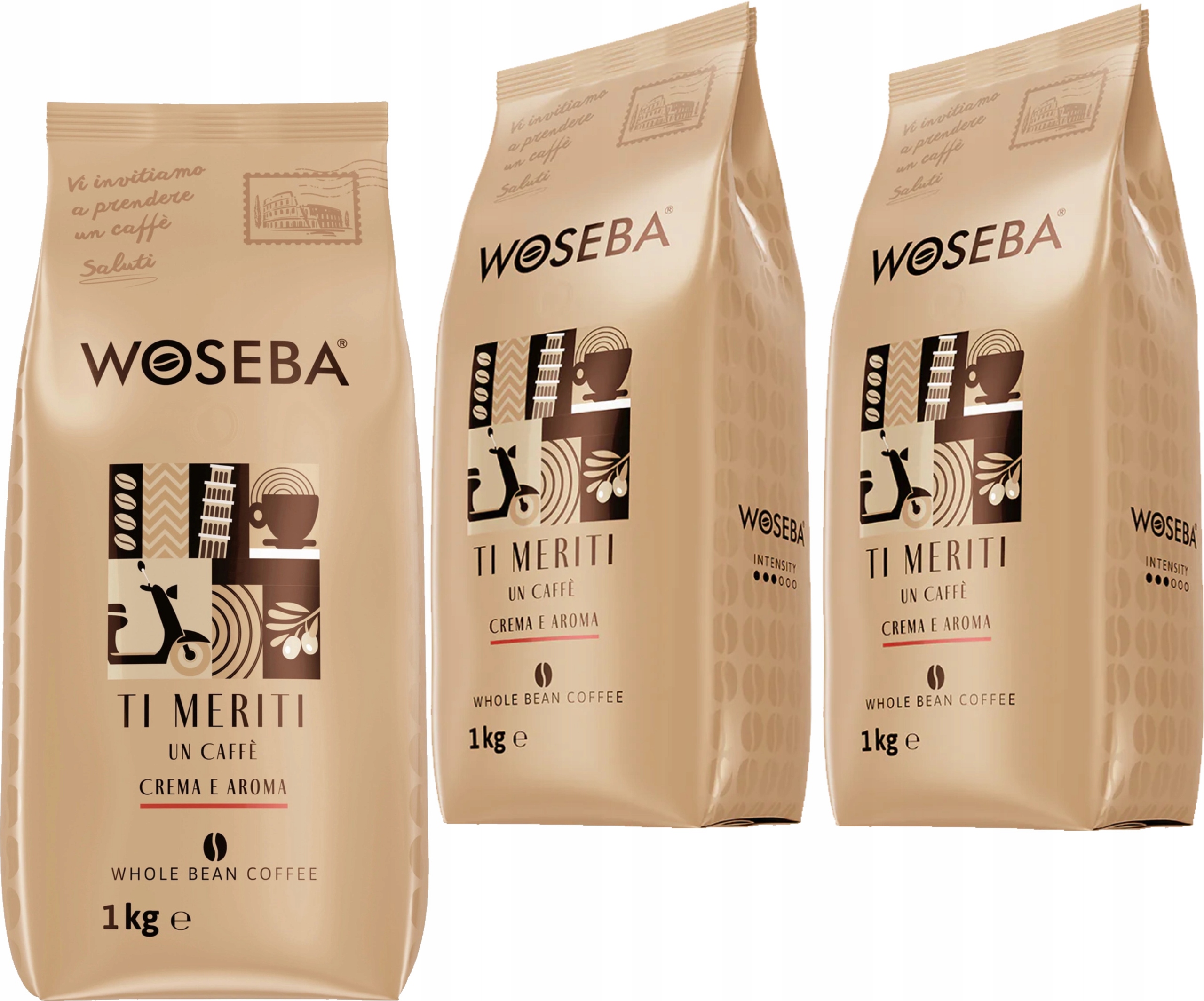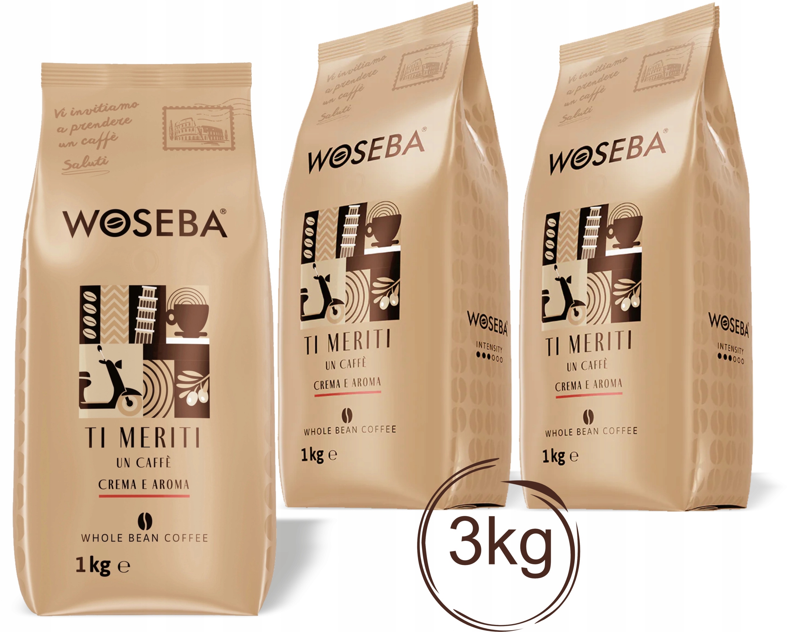 WOSEBA Ti Meriti Crema e Aroma 3x1 kg – Kawa ziarnista o harmonijnym smaku i gęstej cremie